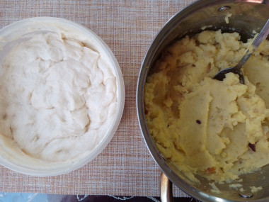 В картофельную начинку можно добавить обжаренные грибы, измельченный укроп.