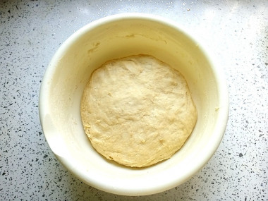 Тесто должно получиться мягким, нежным и слегка липнуть к рукам. Смажьте дно и стенки миски растительным маслом, чтобы тесто не прилипало к посуде. Готовое тесто также обомните руками с маслом. Миску накройте салфеткой или полотенцем, чтобы оно не сохло и хорошо поднималось. Оставьте тесто в теплом месте примерно на 1-1,5 часа.