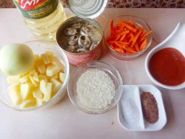 Как сварить рыбный суп из консервы сардины? Подготовьте для этого необходимые ингредиенты. Сардины можно взять как в масле, так и в томатном соусе. Я беру сардины в томатном соусе, чтобы суп был насыщенного томатного вкуса.