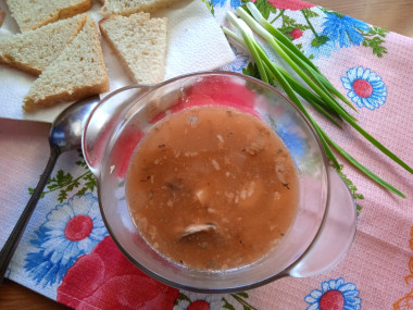 Рыбный суп из консервы сардины- отличный вариант для быстрого приготовления. Консерва у меня в запасе была бланшированная в масле, томатный сок взяла домашний, зелень укропа- замороженную. Супчик получился лёгкий, ароматный, вкусный и быстрый! Спасибо, Юлия М!