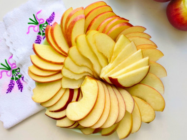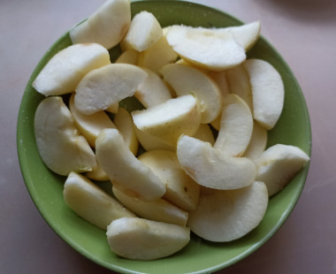 Сначала я подготовила 3 крупных яблока, предварительно удалив семечки и нарезав на дольки.