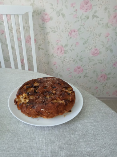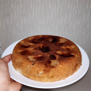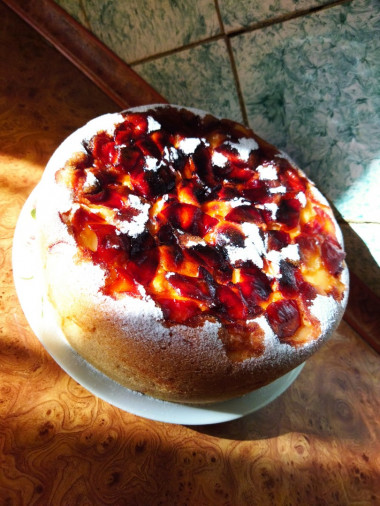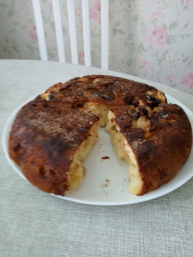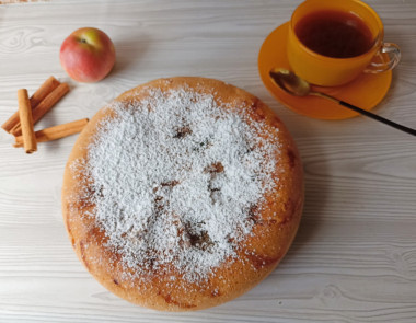 Включите мультиварку на режим "Выпечка" и готовьте 45-50 минут. Готовому пирогу дайте немного остыть, выньте из чаши мультиварки. При желании посыпьте сахарной пудрой и корицей.