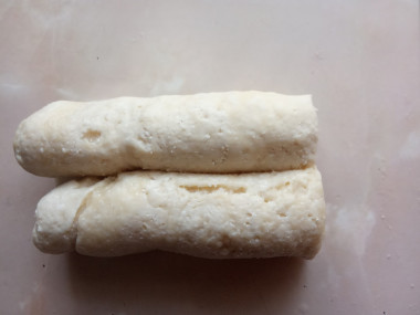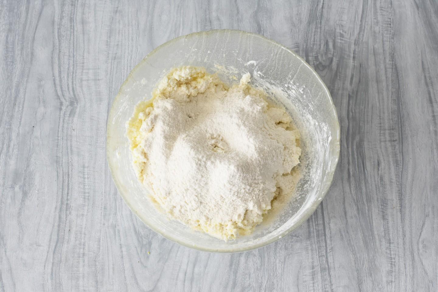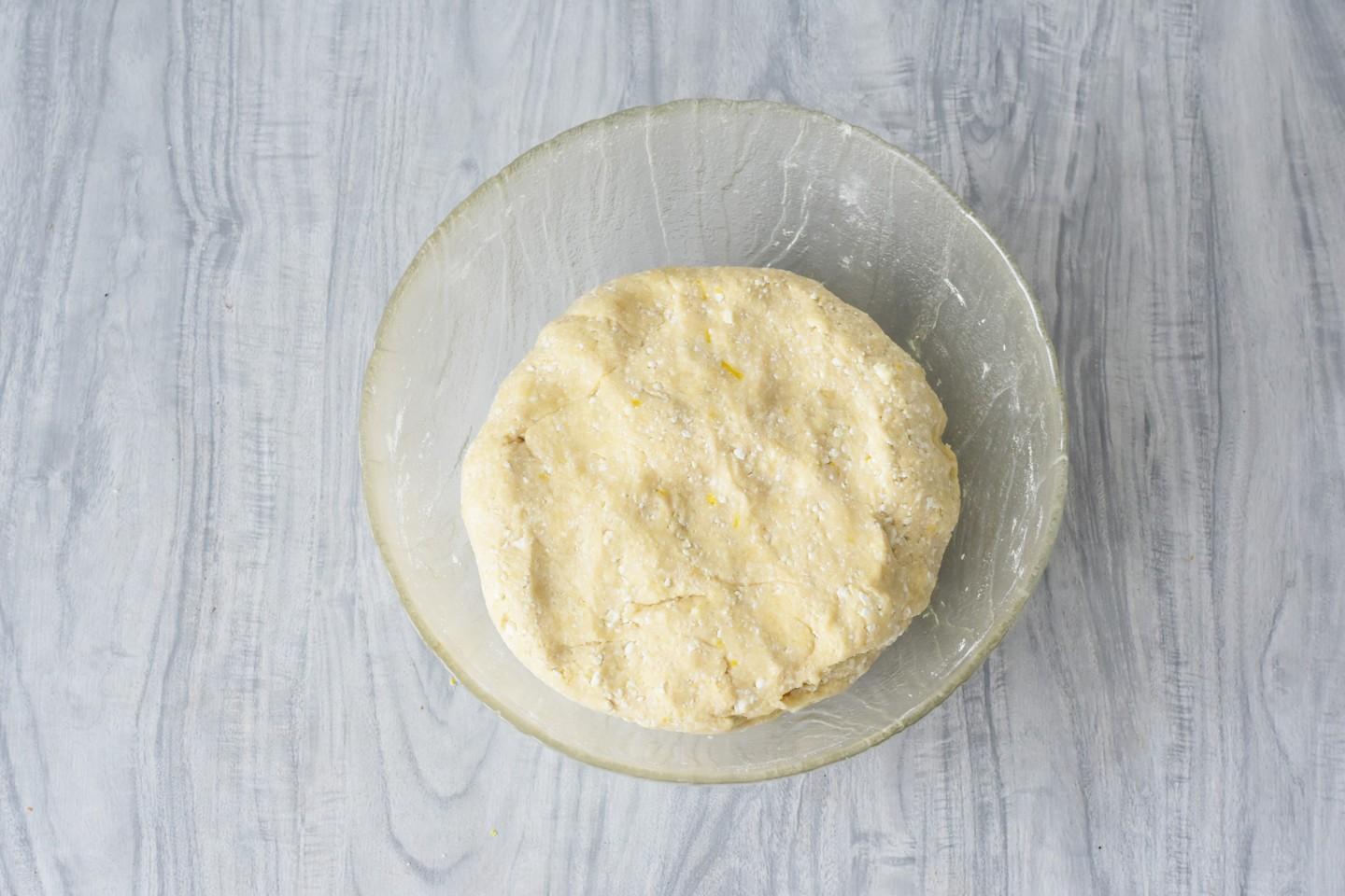 Замесите мягкое эластичное тесто. Тесто скатайте в шар, заверните в пищевую пленку и уберите в холодильник на 30 минут.