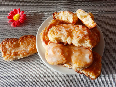 От завтрака осталось немного творога, решила испечь берлинское печенье. Творог был зернистый, протирать его я не стала, поэтому структура печенья получилась немного крупинчатая, но для меня это не критично. Сахара ушло меньше, примерно 150 грамм, хотя тесто при раскатывании я посыпала щедро))), но на мой вкус сладости вполне достаточно, тем более, что готовое печенье смазывается глазурью. Печенье чудесное, лимонная глазурь прекрасно дополняет его вкус. Спасибо автору за рецепт!
