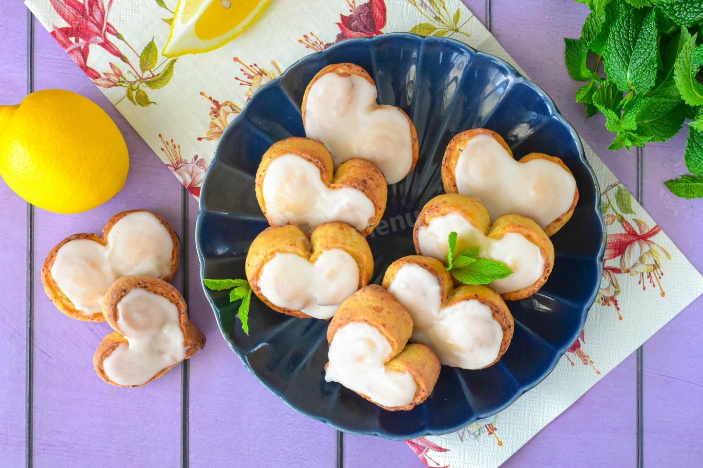 Пока выпекается печенье, сделайте глазурь. Лимонный сок можно заменить на воду, но кислинка в глазури приятно оттеняет сладость печенья.