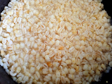 Вода должна полностью испариться, а перловка должна получиться рассыпчатая, зернышко к зернышку.