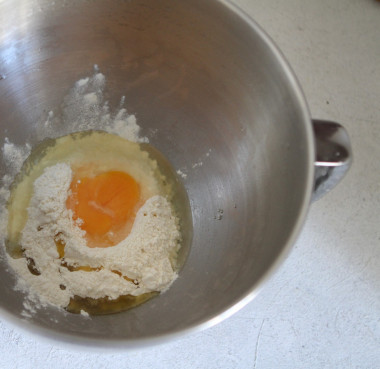 Сразу начните собирать муку к центру от краев, как бы закапывая яйца. Постепенно тесто начнет собираться в комок. если оно будет слишком жидким, то всыпьте еще муки. Если чересчур крутым, добавьте еще один желток или яйцо, в зависимости от крутости теста.
