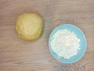 Теперь приготовьте начинку. Творог лучше берите не сухой, жирностью 5-9%. Обычный сахар можете заменить на ванильный сахар.
