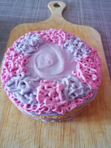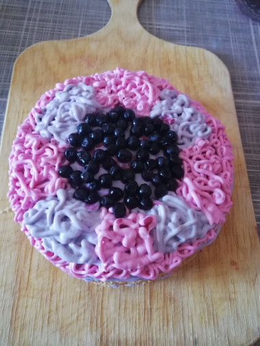 Для окрашивания крема я добавила сок свёклы и черники, думаю можно и с другими цветами и продуктами экспериментировать! Только не советую добавлять много, так как текстура становится более жидкой.
