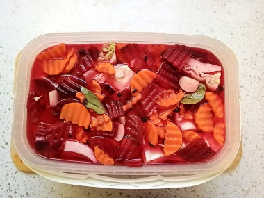 Для более нежного вкуса можно очистить свеклу от кожуры после маринования.