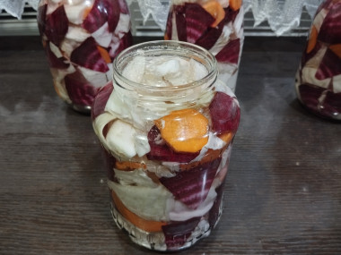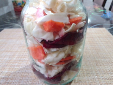 Плотно закройте банки со свекольно-капустной закуской стерильными крышками и немедленно уберите в холодильник. Для равномерного просаливания и насыщенного цвета ежедневно встряхивайте банки. Через 3 дня маринованная капуста со свеклой будет полностью готова — хрустящая, ароматная и яркая. Храните заготовку в холодильнике при температуре +1...+5°C до 3 месяцев.