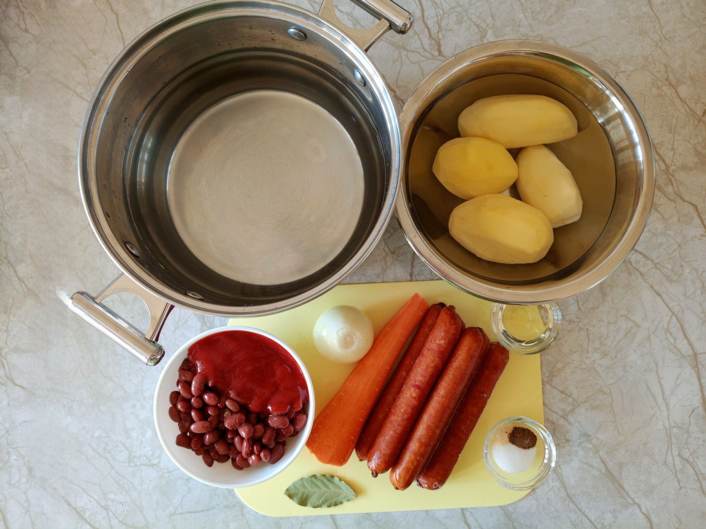 Искала несложный и сытный рецепт на скорую руку — и этот суп с охотничьими колбасками полностью оправдал ожидания. Готовила по шагам, но с небольшой корректировкой пропорций: у меня была упаковка колбасок весом 300 гр., поэтому я пересчитала количество остальных ингредиентов с помощью калькулятора рецепта и увеличила объем воды до 2,2 литров. У меня была фасоль в собственном соку, поэтому просто слила с неё жидкость и добавила томатной пасты. Все получилось гармонично.