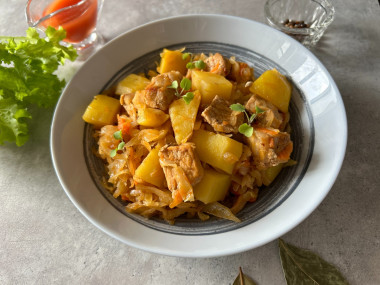 Решила приготовить на ужин рагу с капустой картошкой и мясом. Все готовила по рецепту, в качестве специй использовала приправу для мяса и 1 шт. лаврового листа. В итоге мясо хорошо прожарилось, а картошка и капуста стали мягкими. Блюдо понравилось, буду готовить еще. Спасибо автору за рецепт.