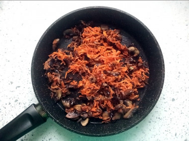 От себя добавлю, что здесь можно немного поэкспериментировать. Например, вместо жареной моркови взять маринованную по-корейски. Или заменить жареные грибы маринованными.