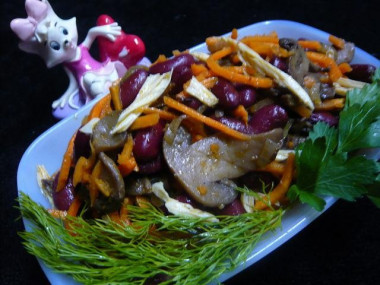 Ингредиенты этого салата, сочетаясь, рождают неповторимый вкус! Очень вкусно. Салат с шампиньонами и фасолью забрала в копилочку спасибо!