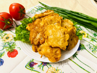 Рецепт очень простой по нему готовить легко и просто. Треску взяла в брикете кусочками, размораживала около суток в холодильнике, большой брикет был. Нарезала рыбку, посолила, приготовила кляр по рецепту, единственное не стала добавлять специи, кроме соли, люблю натуральный вкус рыбы.