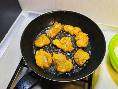 Каждый кусочек рыбы полностью окуните в получившейся кляр.