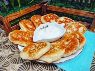 Тесто поднялось отлично,в течение 30 минут. Ложкой выкладывала тесто и обжаривала оладьи с двух сторон.