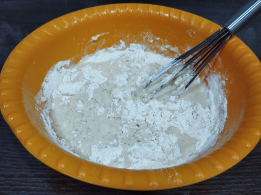 Добавьте щепотку соли и ванилина. Как заменять ванилин читайте по ссылке в конце рецепта. Постепенно подсыпайте просеянную муку и вмешивайте её в тесто. Муки может понадобиться чуть меньше или больше, чем указано в рецепте. Ориентируйтесь на консистенцию готового теста.