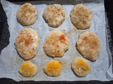 Сделала котлеты из куриной грудки в духовке по этому рецепту. Использовала покупной куриный фарш из куриного филе. Ломтики батона, срезав корочку, замочила в молоке. Лук натерла на тёрке, ещё от себя добавила пару зубчиков чеснока. Смешала все ингредиенты. Из специй добавила соль и перец. Пергамент смазала маслом и выложила котлеты из полученной массы, слепила влажными руками. Решила украсить котлеты, чтоб было более аппетитно. В этом мне помог ребенок и посыпал сверху котлеты молотой паприкой, куркумой, молотым кориандром и хлопьями паприки. Запекала маленькие котлетки 10 минут в нагретой до 180 С духовке, большие - 20 минут. Результат превосходный. Маленький теплые котлетки (не успела сфоткать) ребенок сразу слопал, они очень мягкие, нежные и сочные. Большие котлеты (успела сфоткать) получились очень красивыми и аппетитными. Они при разломе выделяли сок, структура рыхлая, прям воздушная. Ребенок их все попробовал и сказал "слишком вкусно!". Нам с мужем тоже досталось немного попробовать) шикарный вкус у куриных котлет. Они диетические, не жирные, очень и очень сочные, нежные, мягкие, прям хочется ещё и ещё. Потрясающе вкусно! Обязательно еще раз повторю. Готовить элементарно и запекать очень быстро. Великолепный рецепт! Огромное спасибо автору 😊