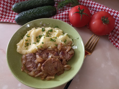 На сайте нашла рецепт жареных кусочков свинины на сковороде с луком. Сочетание мяса с луком- это беспроигрышный вариант. Сначала лук при жарке размягчается и выделяет сок, которым напитываются кусочки мяса, а когда жидкости не остаётся, лук и мясо зарумяниваются, приобретают аппетитнейший аромат и вкус. Я подавала жареное мясо с картофельным пюре и свежими овощами. По-домашнему вкусно и сытно. Спасибо автору за рецепт!