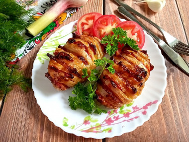 Картошка гармошка с беконом - блюдо очень вкусное и очень сытное. В нашей семье один из самых любимых рецептов. Раньше делала без помидоров, а теперь буду делать только так. Большое спасибо за рецепт!