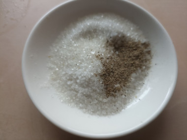 Приготовьте смесь для засолки рыбы. Возьмите соль и сахар.