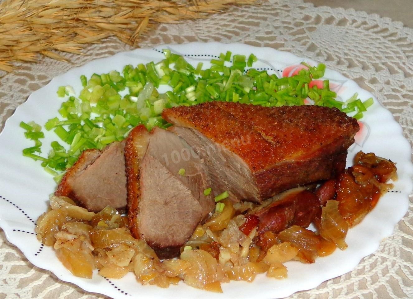 Подавайте утку горячей с любимым гарниром. Перед подачей к столу порежьте филе на кусочки. Приятного аппетита!