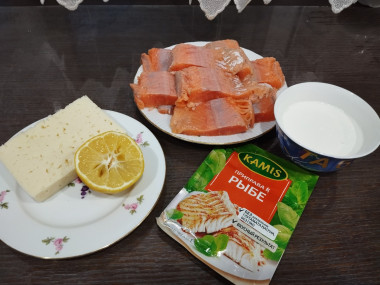 Калорийность продуктов: Филе форели, Соль, Специи сухие, Сливки, Твёрдый сыр, Лимонный сок