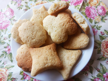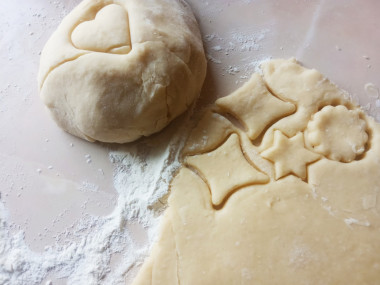 Размягченный при комнатной температуре маргарин тщательно растираем с сахаром (по желанию маргарин можно заменить сливочным маслом). Вбиваем в полученную массу яйца, добавляем сметану, соль и соду. Перемешиваем массу. Всыпаем просеянную муку, хорошо перемешиваем ложкой тесто. Когда оно начнет собираться в однородную массу, вымешиваем его руками. Должно получиться мягкое эластичное тесто, не липнущее к рукам. Тесто готово. Осталось раскатать его в тонкий пласт и формочками вырезать печенье, испечь в духовке.