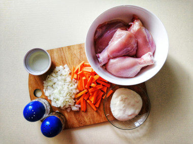 Как потушить курицу на сковороде? Возьмите продукты по списку. Курицу очистите, удалите все лишнее, хорошо помойте и обсушите бумажными полотенцами. Овощи также хорошо вымойте и обсушите. Сметану берите любой жирности. Вместо подсолнечного масла можете использовать любое растительное, для жарки.