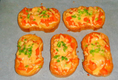 Если добавить колбаску, то такие горячие бутерброды запеченные в духовке с сыром станут альтернативой пиццы.