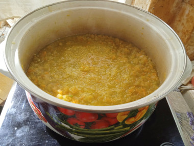 Икра получается яркой за счет большого количества морковки, а консистенцию можно сделать более однородной с помощью погружного блендера. Из указанного количества ингредиентов получается две литровых банки икры.