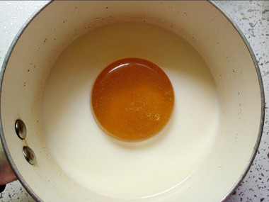 Перемешайте смесь и поставьте на небольшой огонь. Не забывайте следить за тем, чтобы сахар не пригорел ко дну.