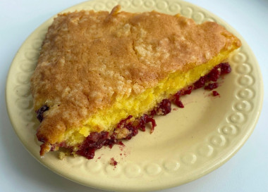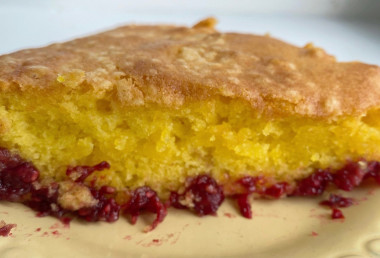 Пирог получился отличный, нежный и сочный! Сливочное масло придает тонкий сливочный аромат. Для дополнительного аромата можно добавить ваниль, цедру цитрусовых или мяту. Такой яркий цвет получился благодаря использованию домашних яиц. Только я люблю добавлять ягоды не в тесто, а на дно формы, смазанной сливочным маслом, и присыпать сахаром. Ягоды карамелизуются и получается тоже очень вкусно. Пирог одинаково прекрасно подавать как теплым, так и охлажденным.