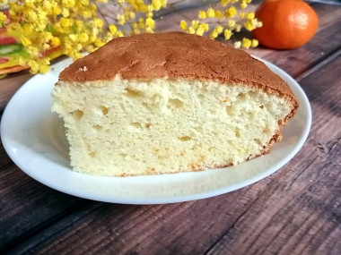 Все дозировки продуктов и технологию повторила по рецепту. От себя только добавила цедру с одного мандарина для дополнительного аромата. Белки смешивала с желтковой массой осторожно, муку вмешивала еще осторожнее плавными движениями. Тесто получилось похожим на воздушный крем. Пирог выпекала в форме диаметром 20 см. примерно 40 минут. При охлаждении выпечка не опала. Разрезала пирог еще теплым, он отлично нарезается и не крошится.