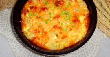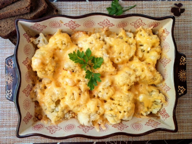 Румяное и очень нежное блюдо из цветной капусты! Цветная капуста в духовке с яйцом и сыром готовится быстро, так как главный ингредиент предварительно отваривается в воде. Для получения румяной корочки рекомендуется посыпать запеканку тертым сыром. Такое ароматное и сытное блюдо из цветной капусты можно подавать к столу с мясными тефтелями или рыбными биточками. Большое спасибо за рецепт!
