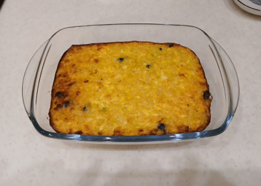 Вышла запеканка, внутри которой хрустит рис. Не советую этот рецепт