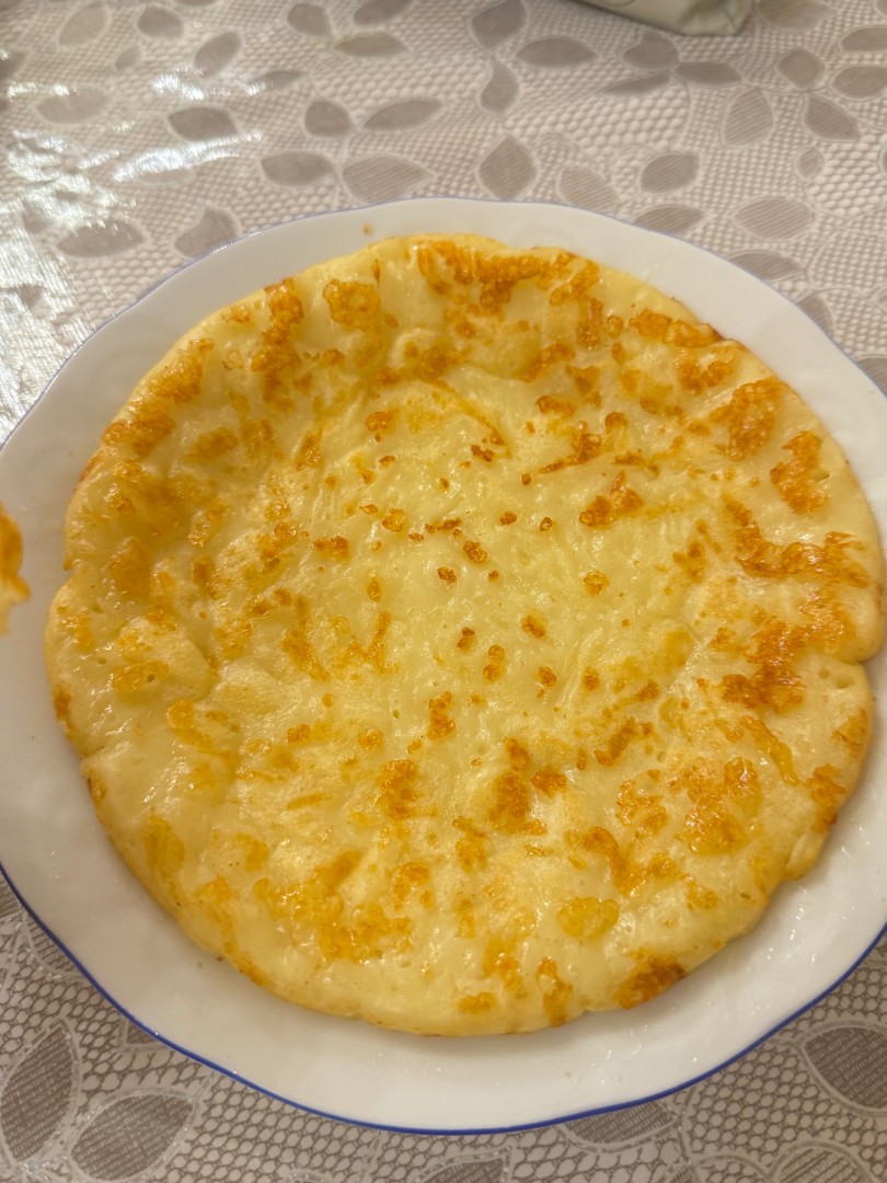 У меня нет грузинского мягкого имеретинского сыра, с которым хачапури чаще готовят, я делала из обычного твердого вареного. И получилось вкусно! Можно было бы смешать его с рассольным, но я не стала. Хочу сказать, что с этим рецептом справится даже ребенок! Ничего не нужно замешивать руками, здесь начинка одновременно и тесто. Вылил на сковороду, и готово, супервкусно.