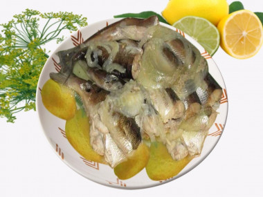 Ряпушку почистила от чешуи и надрезав брюшко удалила внутренности. Лук нарезала колечками. Собрала все слоями в форме и запекала в духовке пол часа.