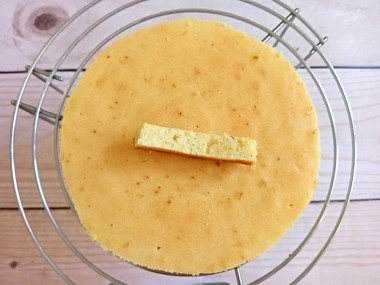 Готовый бисквит оставьте немного постоять в форме. Затем извлеките и остудите.