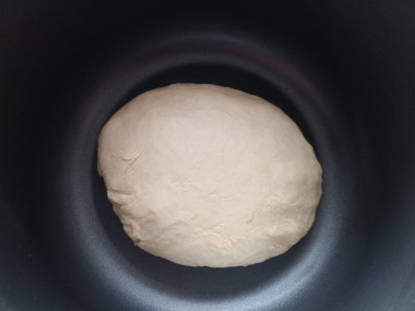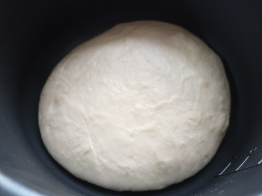 Тесто я замешивала прямо в чаше мультиварки. Пропорции ингредиентов отличные, тесто вышло эластичное, плотное, но в то же время достаточно мягкое.