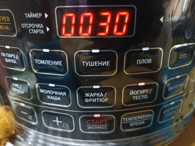 4. Выкладываем тесто в чашу мультиварки, выбираем программу "Мультповар" устанавливаем температуру 40 градусов и время - 30 минут.