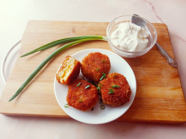 Сегодня готовила картофельные шарики с сыром, к завтраку. Все ингридиенты и последовательность - по рецепту. Из специй использовала только соль и паприку. С формированием первого шарика пришлось повозиться- когда вынимала из кляра- картофельная масса так и норовила отвалиться от сыра))) В этот раз приспосабливаться и приноравливаться к правильному формированию шариков я, честно признаюсь, не стала. Остальные шарики сразу обваляла в панировочных сухарях- и на сковородку! Несмотря на это отступление от технологии, получилось очень вкусно! Корочка - хрустящая, картофельная масса пропеклась как надо и внутри - мягкий, расплавленный сыр. Обязательное условие для достижения такого идеального сочетания- хорошая,толстостенная сковорода.Рецепт однозначно идёт в копилочку. Спасибо автору. В следующий раз буду делать как минимум двойную порцию)) Думаю, что и с кляром у меня всё получится.