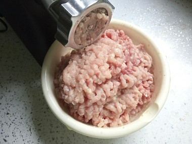 Мясо нарежьте на кусочки и пропустите через мясорубку. Если нет такой возможности, то можно купить уже готовый фарш. лук очистите и мелко нарежьте. Добавьте нарезанный лук в чашу к фаршу. По вкусу подсыпьте немного соли и специи. В качестве специи можно взять молотый перец и немного сушеных ароматных трав. Все перемешайте.