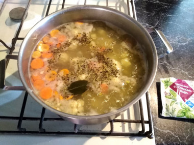 Ранее готовила супы исключительно на бульонах, а как оказалось на воде получается замечательный супчик) сделала первое блюдо очень просто и быстро, у меня заняло это от силы пол часа. В фарш я добавила лук, измельчив его на тёрке. Вместо перца положила молотый кориандр, есть будет ребёнок всё таки. Прованские травы придали супчику потрясающего аромата.