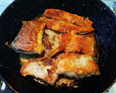 Всегда жарю рыбу только таким способом. В этот раз был сазан жаренный на сковороде. Рыбу хорошо промыла проточной водой, вырезала хребет и разрезала на кусочки где-то по 2-3 см. Хорошо натерла солью с черным молотым перцем и оставила мариноваться на 30 минут. После этого обмакнула в муке и жарила на растительном масле, не накрывая крышкой в течение 7 минут на среднем огне с каждой стороны. Выложила на бумажное полотенце, чтобы удалить лишнее масло. Рыба по такому рецепту получается мягкая и сочная внутри, с хрустящей корочкой снаружи. Благодарю за рецепт.