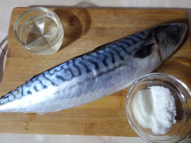 Как сделать слабосоленую скумбрию в домашних условиях? Подготовьте все необходимые ингредиенты. Замороженную тушку предварительно разморозьте образом. Как это правильно сделать читайте в статье на эту тему. Ссылку вы найдете в конце этого рецепта.