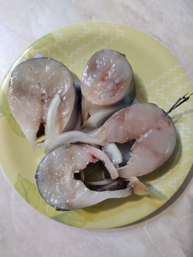Рыбку вымойте, выпотрошите, удалите голову. Нарежьте на порционные кусочки.