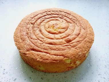 Бисквит выпекала в кольце диаметром 20 см., маслом дно и стенки не смазывала. Так бисквит будет ровнее и выше. Выпекала 30 минут до сухой шпажки. Получился он высотой 4 см. Остывший бисквит обернула пищевой пленкой и убрала в холодильник на ночь. Этот прием творит чудеса! На утро мой апельсиновый бисквит легко разрезался на три коржа. На ощупь пружинит, не ломается, не крошится. Аромат апельсина такой сильный и аппетитный! Бисквит пористый, сочный, его даже пропитывать не нужно. Ну, а вкус просто шикарный! Торт получится очень вкусным!